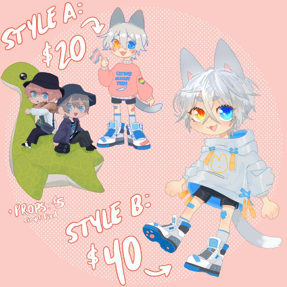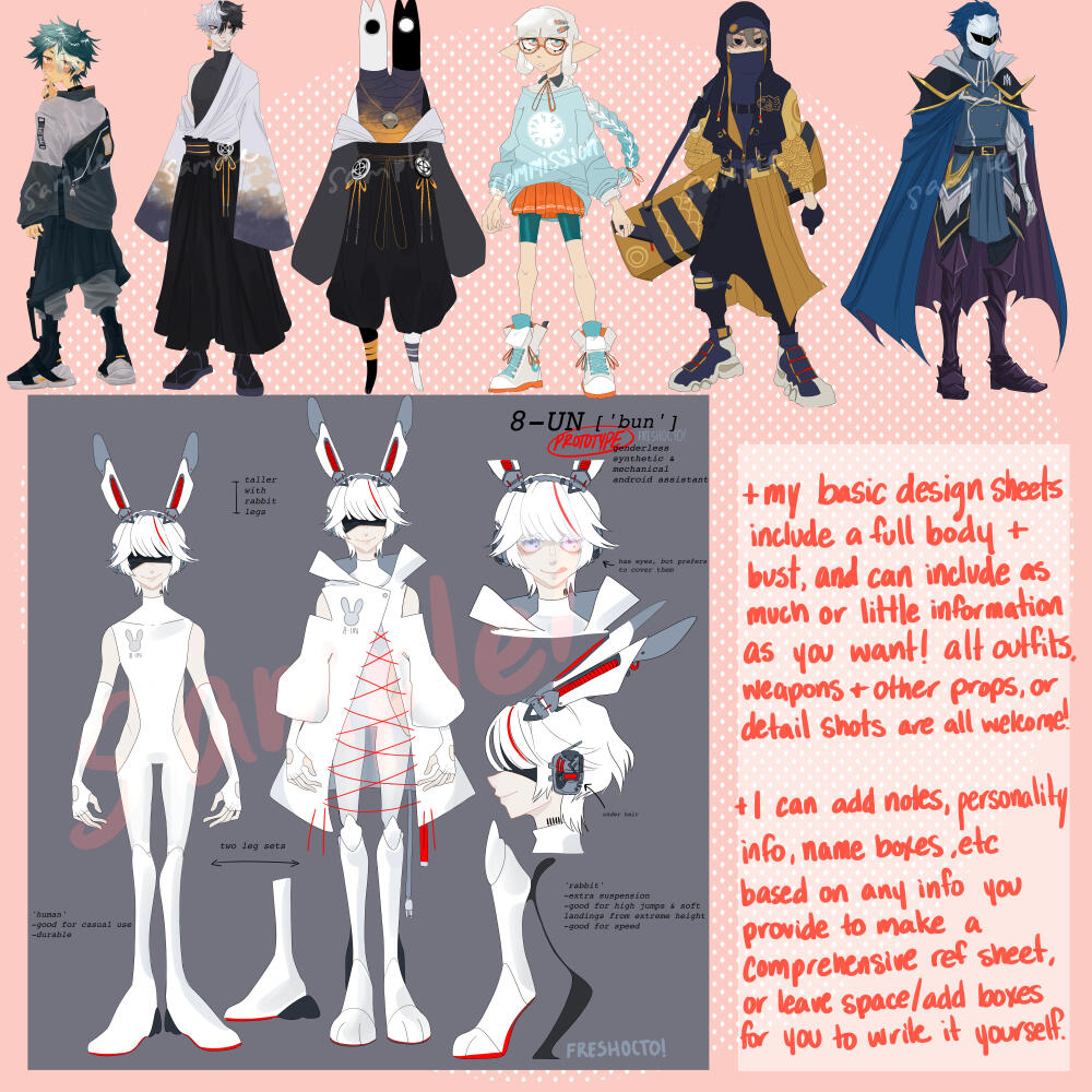 message me for details! prices change depending on complexity, and how much of a reference sheet that you want for the designi usually charge around the same as a generic artwork, plus an amount for the creative labori also do redesigns!